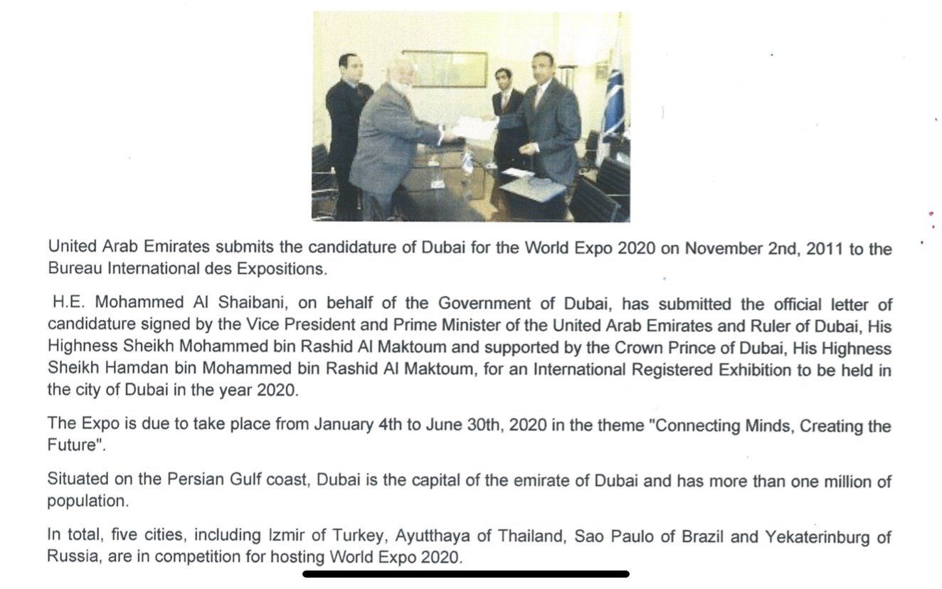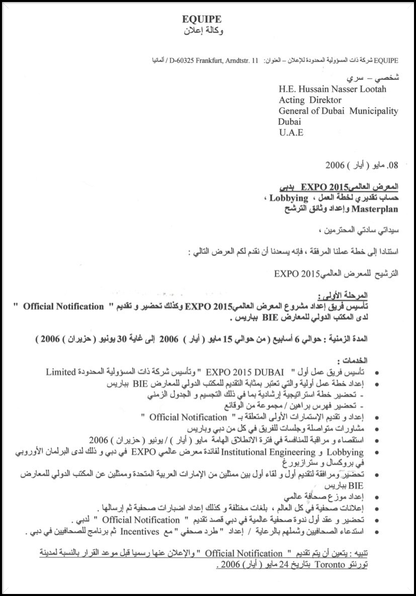 "إذا كان الأمر كذلك بالفعل كما وثقته مجموعة مشروع EXPO من ألمانيا بوضوح ، فيمكن وصفها فقط بأنها سرقة فكرة واضحة. يجب على منظمة EXPO من دبي إصلاح الضرر."